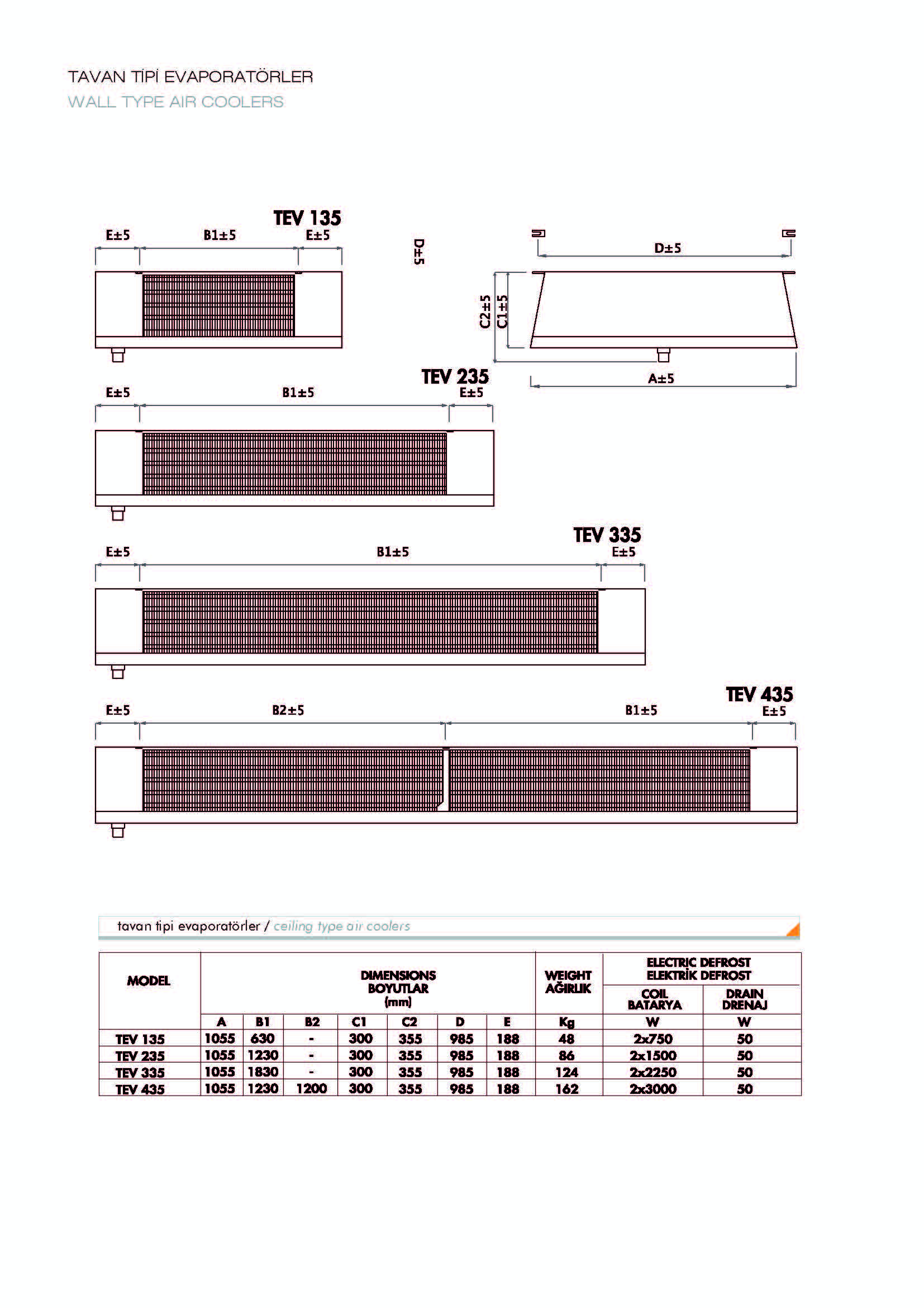 Defrost rezistansları kapasiteye uygun güçlerdedir.